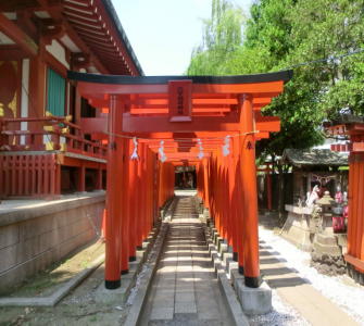 拝殿横は、京都の伏見稲荷大社ほどではありませんが、千本鳥居と呼ばれる連なった朱の鳥居があります。ここをくぐって、奥の宮に参るようになっています。