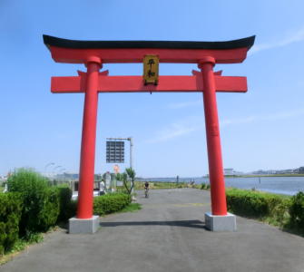 境内を出て、羽田空港方面に歩を進めます。弁天橋を渡ると、徒歩で行ける羽田空港最端の地に平和と書かれた大鳥居が建っています。なぜ、こんなところに違和感溢れる大鳥居が建っているのでしょうか。ここはもともと、穴盛稲荷神社の境内でした。戦後になりますと、アメリカ軍により、神社が強制撤去されることになりました。ところが、この大鳥居を動かそうとしたところ、工事関係者に惨事が相次いで起こり、呪われている大鳥居として撤去されずにいました。結局、1999年に新滑走路整備の時、近隣住民の反対意見を押しのける形で、今の位置に移動されましたが、羽田空港の玄関口で近隣住民を見守りながら堂々と建ちつづけているように感じます。