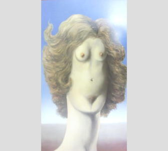 これはしびれた。「凌辱」という作品。女性の胸が目で、臍が鼻、陰毛が口となっていて顔を形成していますよね。この発想こそ大事。