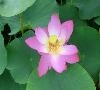 ちらほらと淡紅色の大賀ハスが観えました。もっと早い時間に来ればよかったのでしょう。6〜8時の鑑賞がおすすめということです。あと、例年よりも今年の開花は早かったそうです。開花は6月いっぱいまでとなりそうです。大賀ハスは、2000年以上前から存在したとされる古蓮で、大賀一郎博士が発見したことで、この名がつきました。