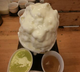 ![]() ありました!谷中銀座から外れたところにあるひみつ堂というお店です。行列ができていて、全然秘密ではありません。整理券が配られていて、2時間半後にまた戻ってこなければなりません。 ![]() 2時間半待って、狭い店内のカウンター席に座り、1番人気のいちごは売り切れたので、生メロンのヨーグルトかけにしました。手動式のかき氷機で、自然冷凍させた氷を削り、器に大胆に盛っていきます。口にした瞬間すぐに溶けるほどふ わふわでした。ヨーグルトは、甘みがあって市販のヨーグルトにはない濃厚な味でした。そこに、生メロンを合わせれば、完成された味になります。ちなみに、右下はお茶です。まあ、おいしい方ですし、店内の学生スタッフによる文化祭風の雰囲 気もいいのですが、待ち時間と整理券で指定された時間に戻ってきてもまた30分ぐらい暑い中外で並ぶ労力と900円という値段を考えたら、一人ではまた並ばないだろうなと思いました。夏は、9時OPENで、他にも蜜のバリエーションがあり ます。あれなら、谷中銀座でメンチカツの食べ歩きもいいでしょう。 |