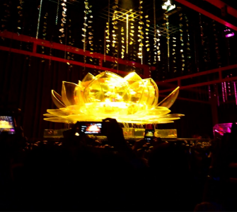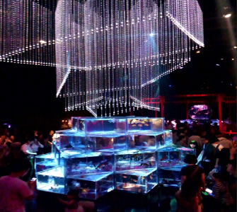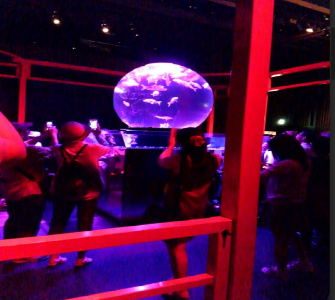![]() 日本橋三井ホールで開催されているアートアクアリウム2015。私が行ったときには30分待ちでした。行列に並び、入り口に入ると、光の中で金魚が泳ぎ、アート作品を形作っています。 ![]() 「アースアクアリウム・ジャポニズム」・・・地球をイメージした直径1.5mの球体の水槽の中を錦鯉が乱舞する作品です。 ![]() 「インフィニトリアム」・・・三角柱のアクアリウムが計40個合体した高さ2.4m、幅4メートルの作品の最上部から、滝のように水が流れ落ちる巨大作品です。 狭い会場で展示数が少ないのに人で混雑していて、おまけに金魚への虐待ではとの疑問も重なってそれなりでした。 |
